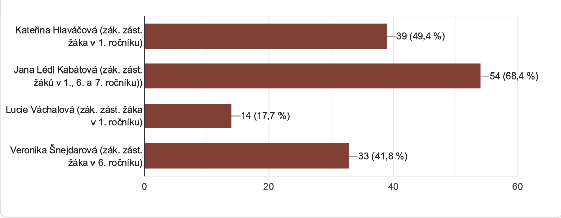 V průběhu minulého týdne probíhaly elektronicky volby 2 členů do školské rady z řad zákonných zástupců. Na prvních dvou místech se umístily paní Jana Lédl Kabátová a paní Kateřina Hlaváčová.