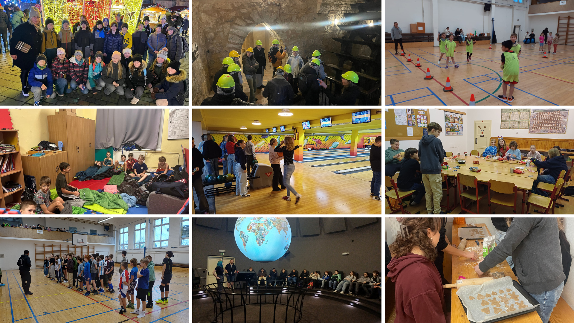 Celý prosinec, zvláště pak poslední týden před Vánocemi, byl doslova nabitý akcemi. Několik tříd navštívilo vánoční trhy v Plzni, deváťáci si prošli plzeňské podzemí, sedmáci se finančně vzdělávali v Techmanii a zahráli si bowling, šesťáci strávili předvánoční noc ve škole a dále proběhlo několik sportovních akcí napříč třídami.