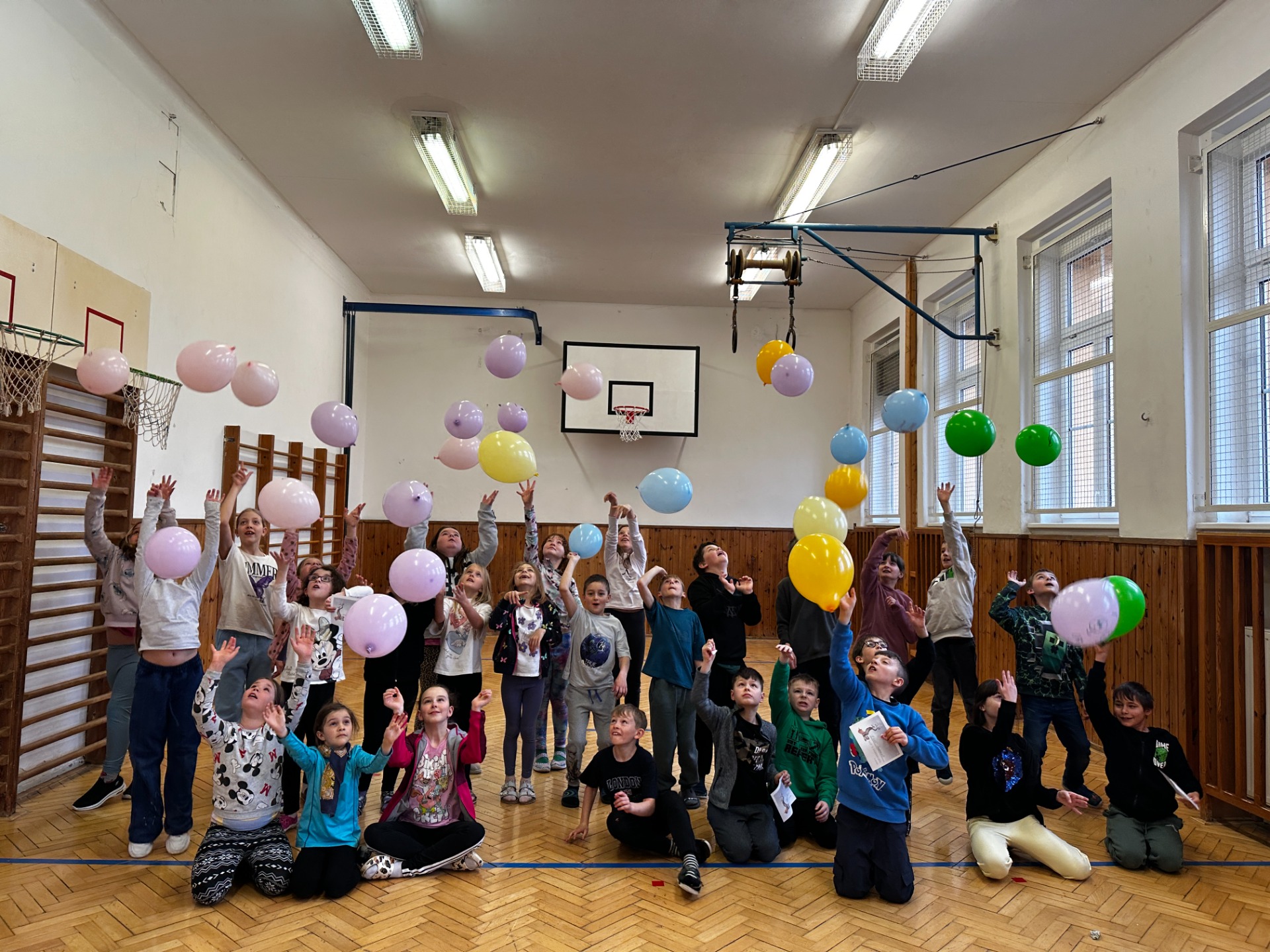 v tělocvičně a v prostorách prvního stupně. Paní vychovatelky připravily spoustu zábavných kvízů a sportovních soutěží, ve kterých se děti opravdu vyřádily.